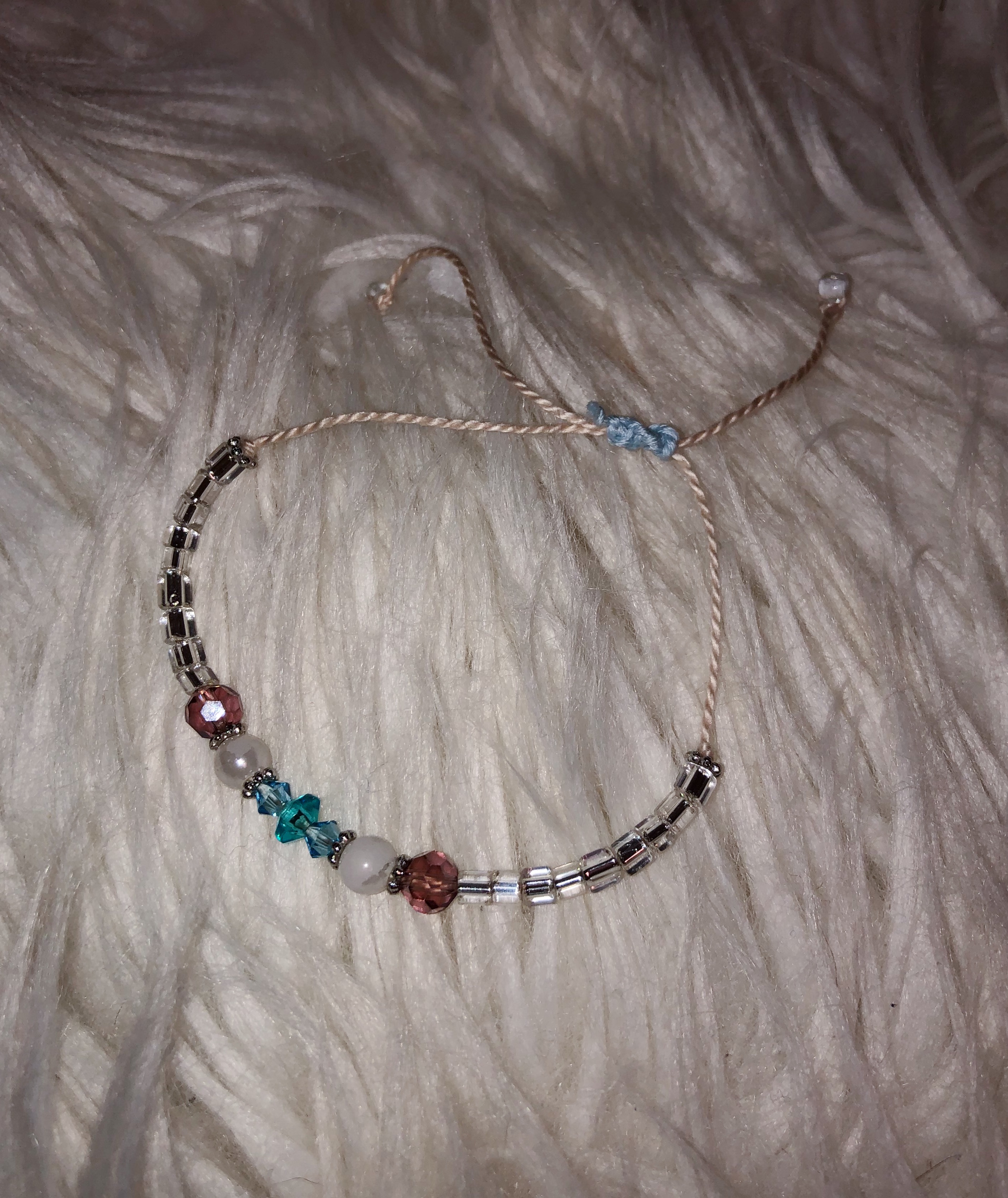 The sliding string knot was a little tricky, but after a YouTube video I was able to figure it out. The square knots allow the string to slide and make the bracelet adjustable.