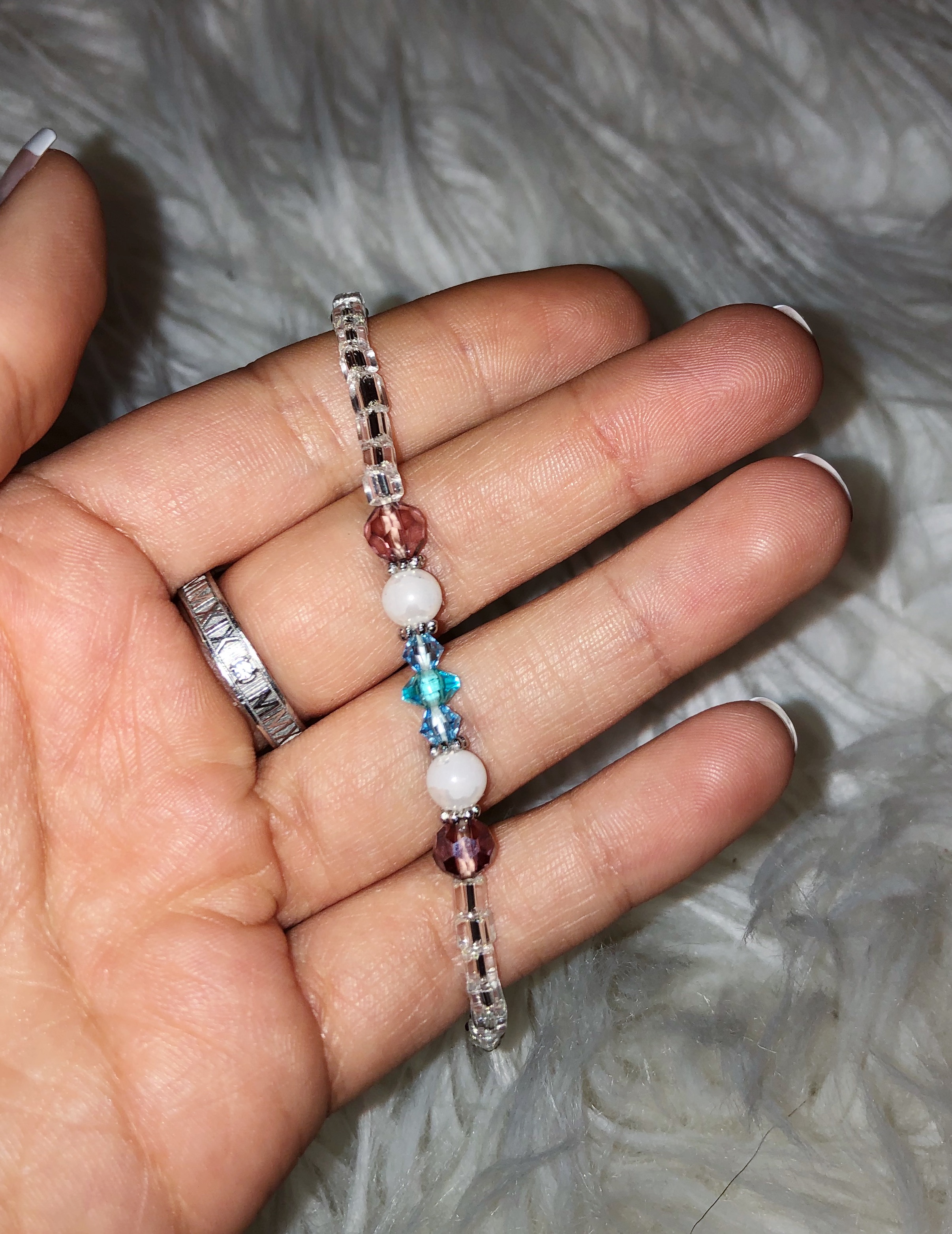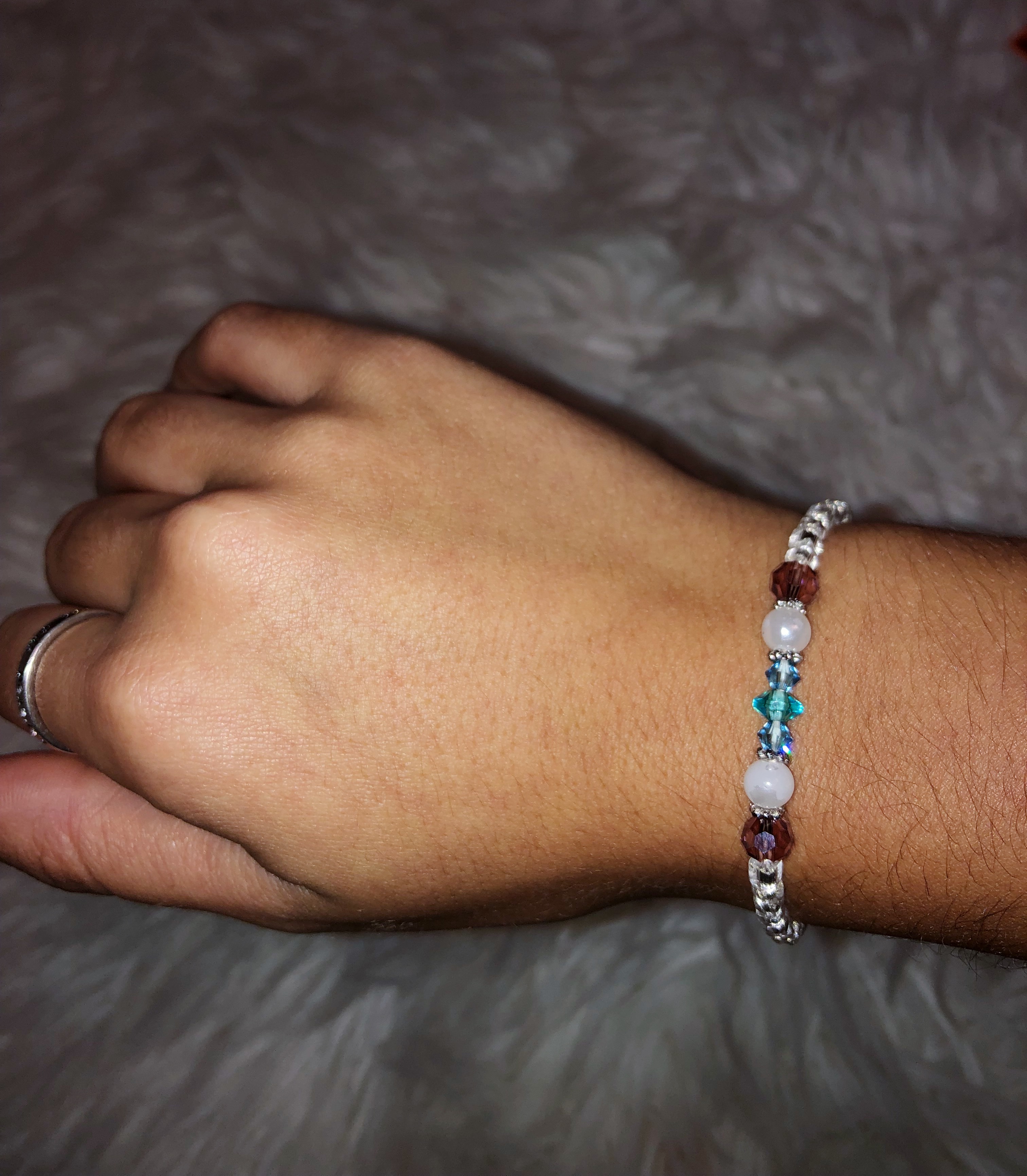 To make this bracelet extra special, I used light blue Swarovski crystal beads from Jo-Ann Fabrics. Simple yet so cute!