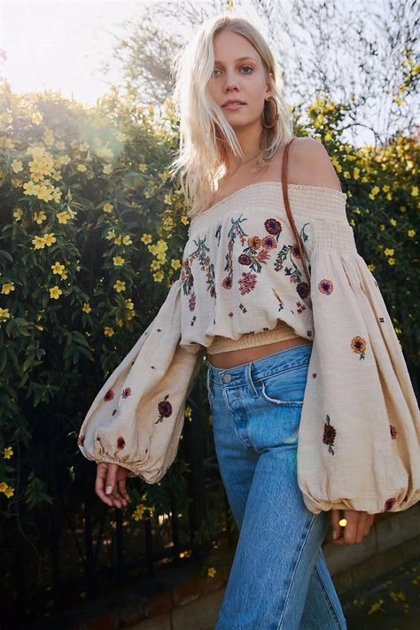 I needed to make jeans a separate category from denim because they are a staple in boho style. To really match Donna, get a pair of flare jeans. Flare jeans did not go out of style with the Dynamos. Bell-bottoms are making a comeback! I recently got the black pair pictured below from American Eagle. Depending on what top you wear, you can make any blue jean look boho chic. Check out the bell-sleeved blouse option below.